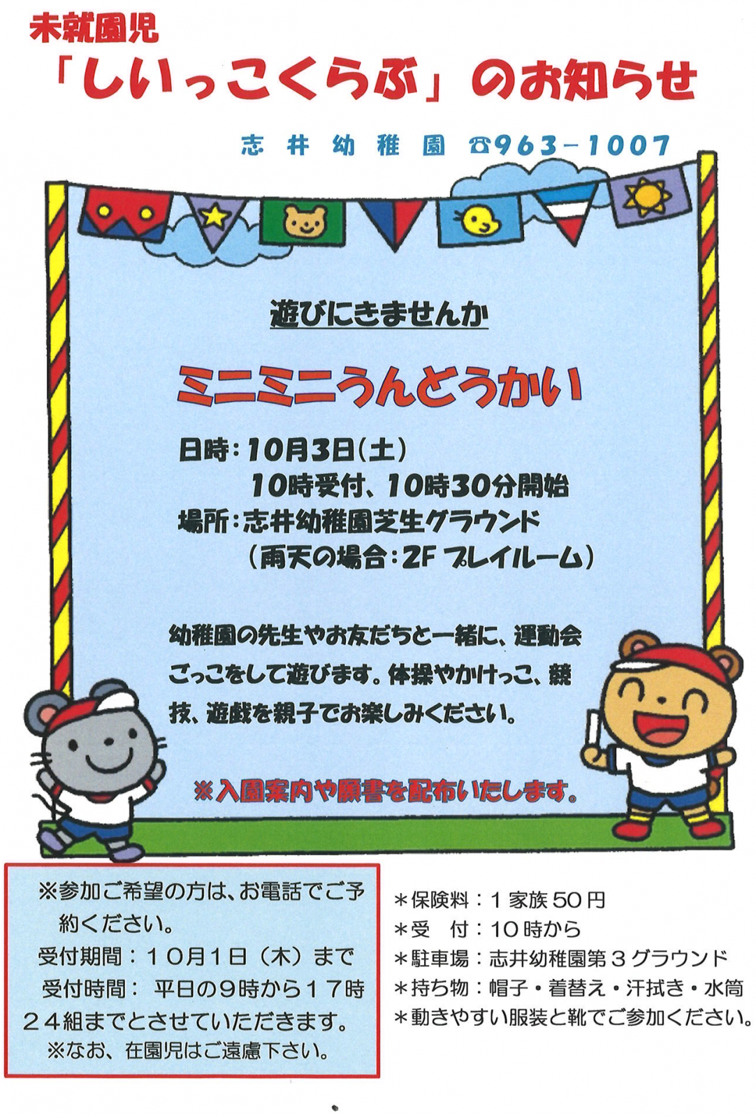 未就園児『しいっこくらぶ』のお知らせ