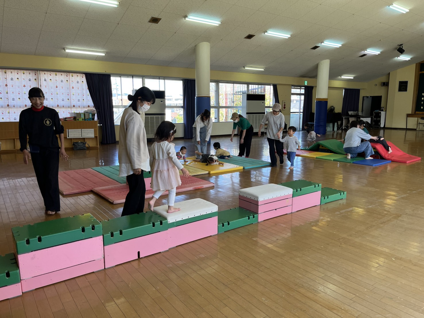 親子でたくさん触れ合ったり、講師のスポーツクラブの先生と体を動かしたりしました!