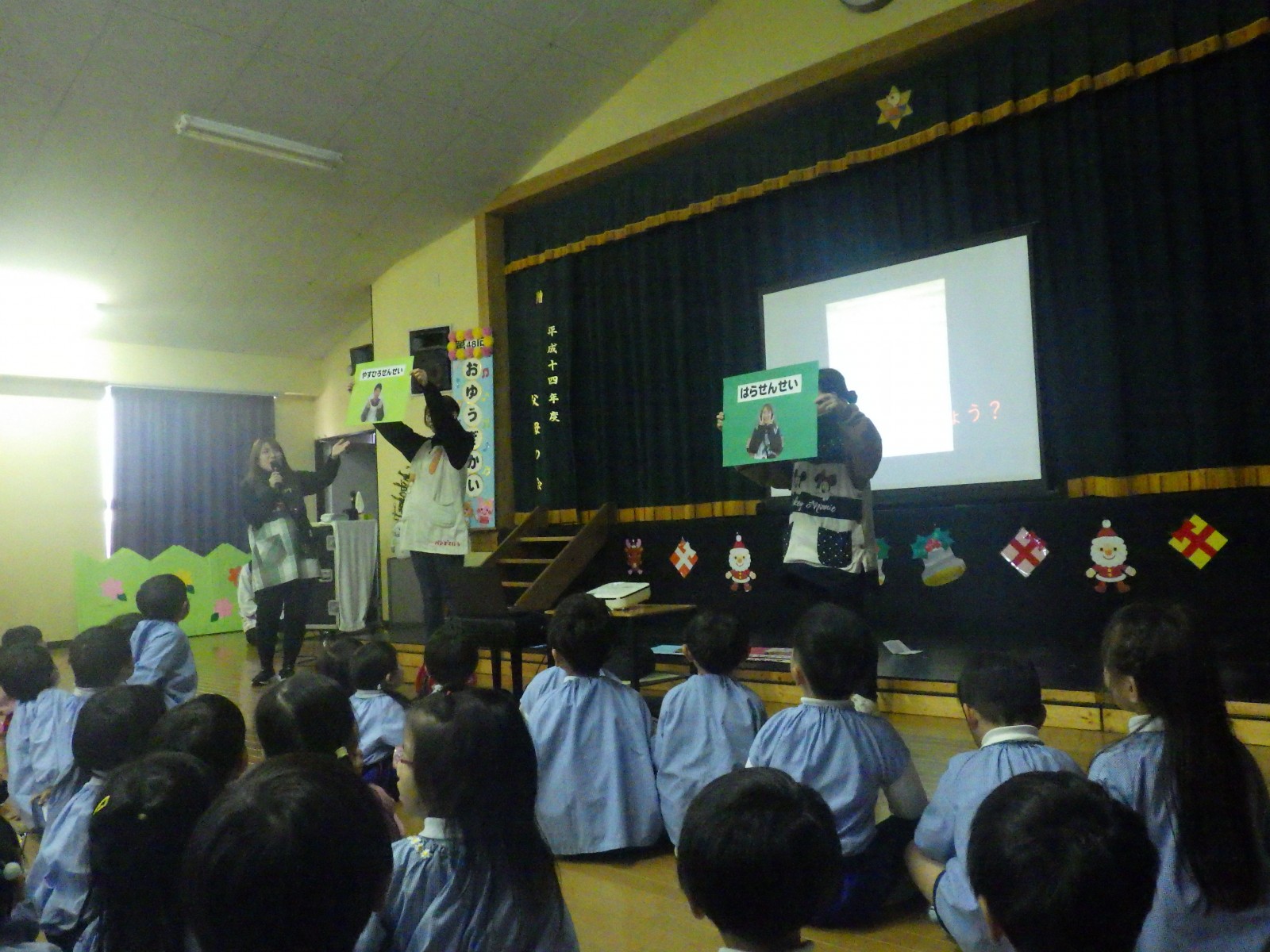 アルバム 一覧に戻る 【2025/12/16】12月誕生会 12月生まれの誕生会を行いました。 今回は、先生当てクイズをしました! ヒントが出るたびに「〇〇先生!」「わかった~」など、子どもたちの元気な声が聞こえてきましたよ♪ 前のアルバム 次のアルバム