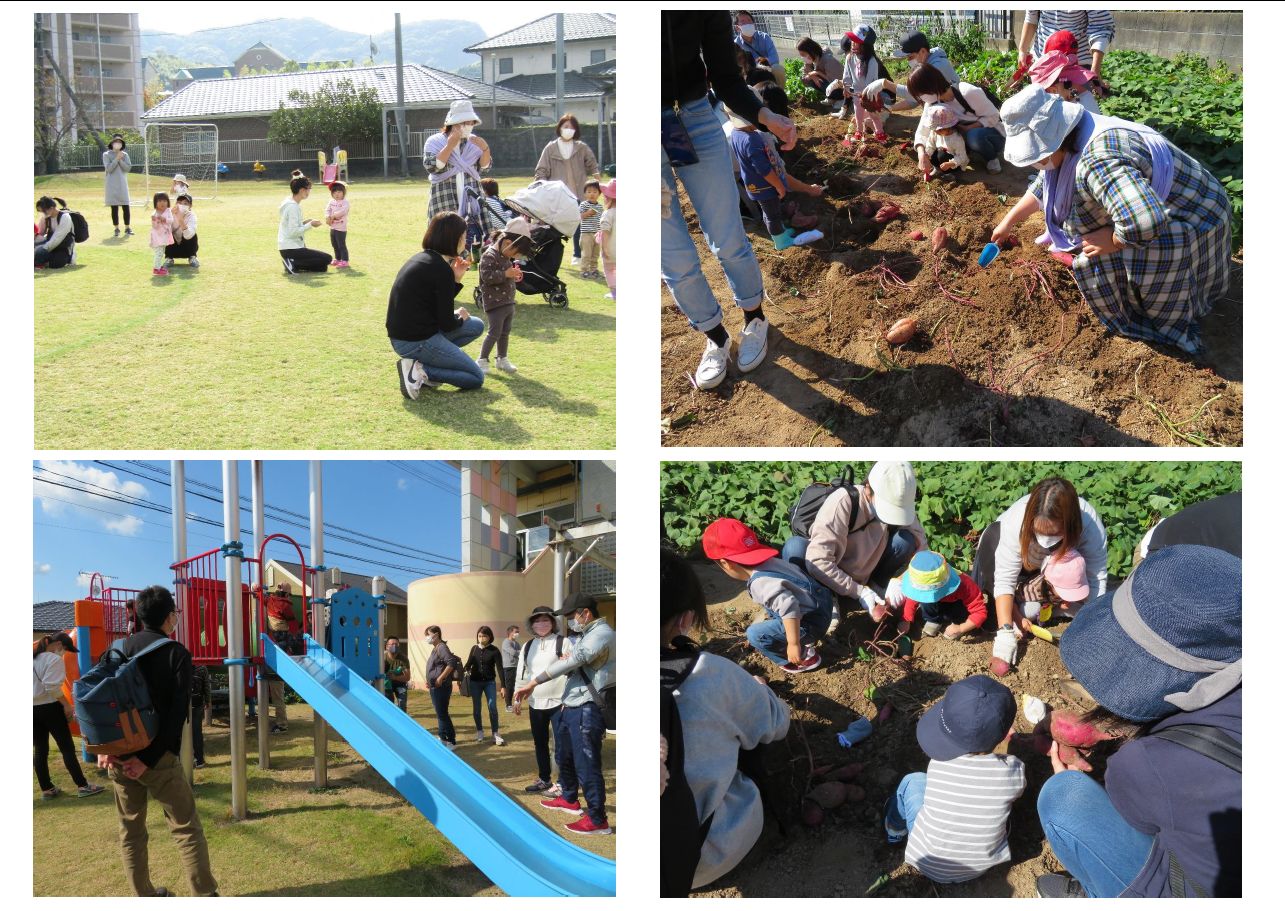 アルバム 一覧に戻る 【2021/10/27】未就園児行事無事に開催しました 沢山の方に来ていただき、楽しく開催できました。 親子で踊ったり、お祭りのゲームを楽しんだり、そして最大のイベント「お芋ほり」をしました。とても大きなお芋で豊作でしたね。 写真はコチラ